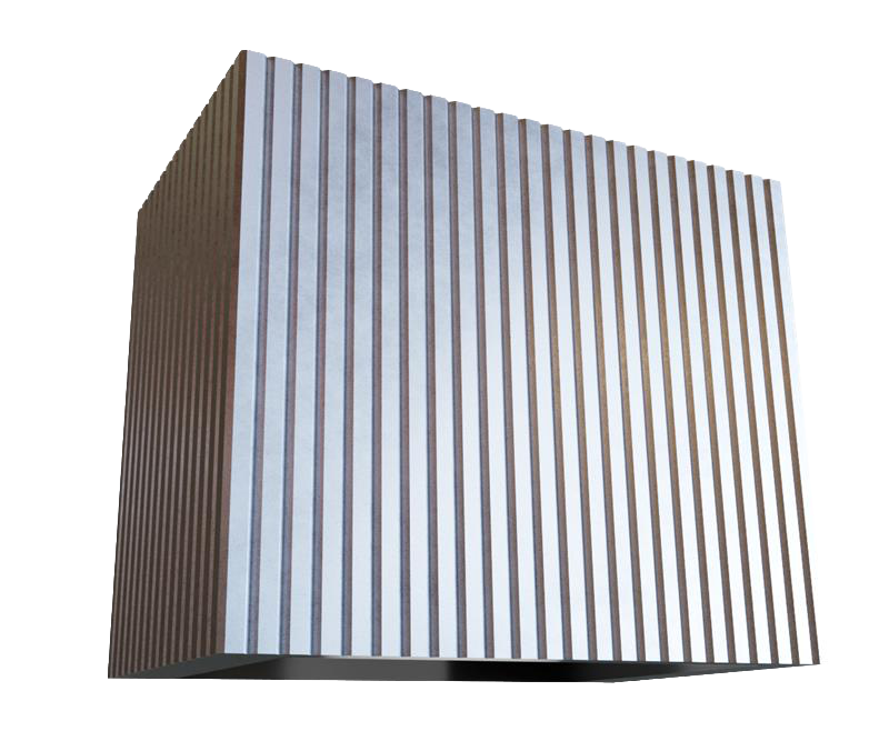 Jill reinterprets the classic box-style range hood with precise vertical detailing. The clean, repeating grooves add depth and structure to its refined, modern form. Comes equipped with a professional spec liner from Falmec.